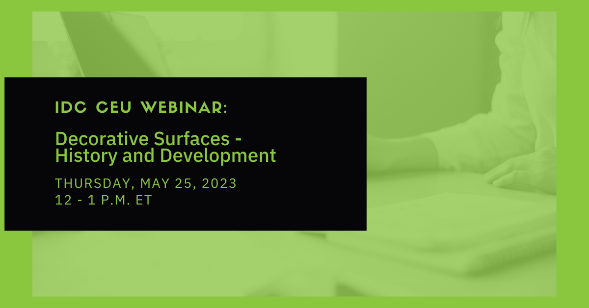 This webinar will enable designers and architects to make more informed choices with decorative surfaces in residential and commercial projects. The knowledge obtained will assist in decisions on budgetary, performance and sustainability questions when looking at decorative surfaces.