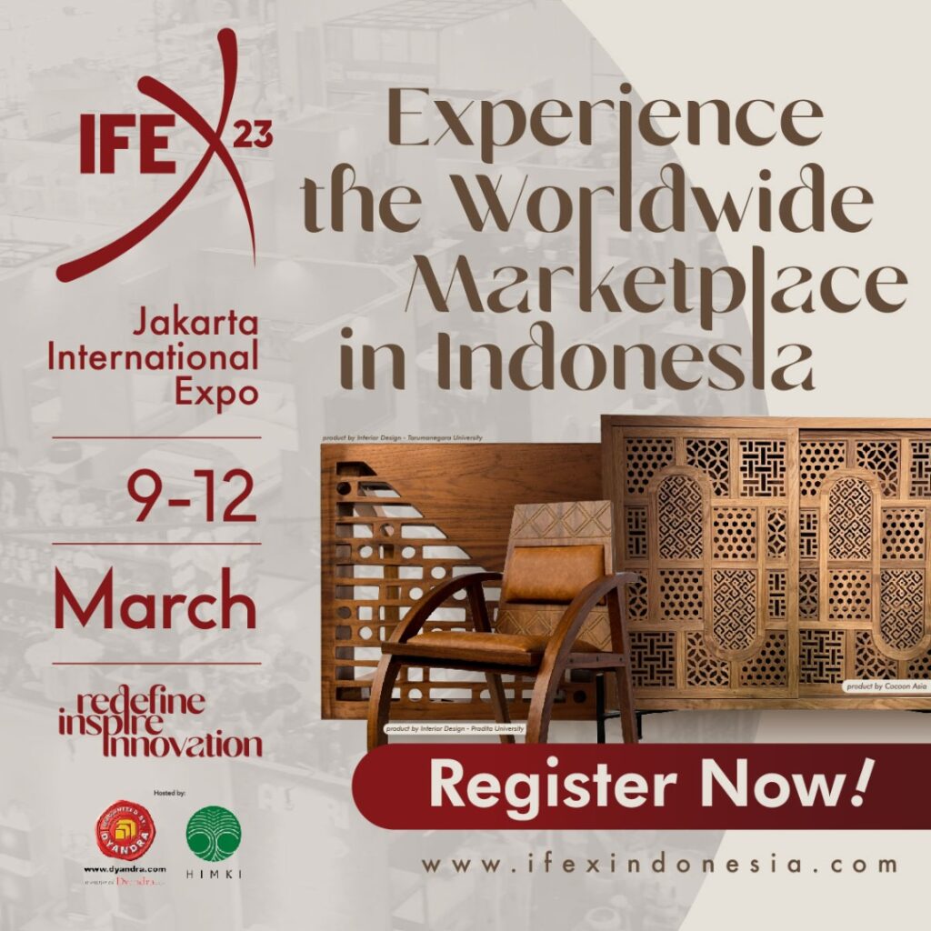 IFEX (Indonesia International Furniture Expo) is ready to give the best performance on March 9-12, 2023 at the Jakarta International Expo. Marking the eighth edition, IFEX 2023 will present an infinite innovation, inspirations, creativity, and hard work for the exhibitors and the buyers so all can enjoy the best experience.