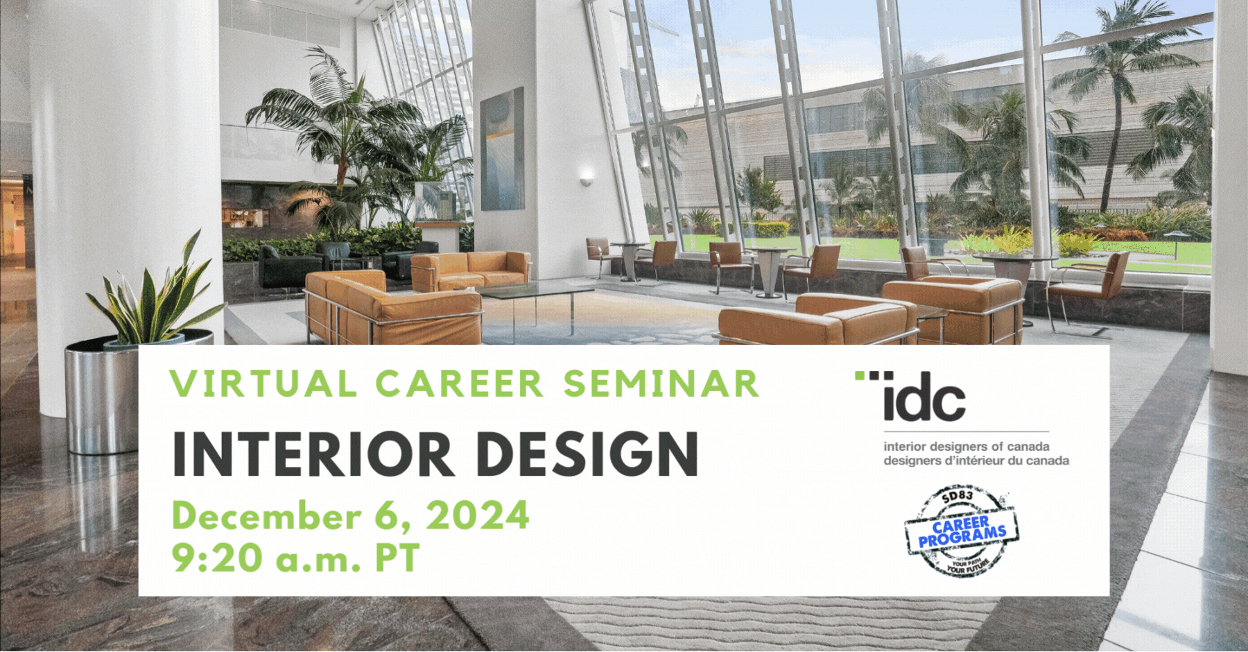 Finishing school and looking to find your dream career? Join Interior Designers of Canada (IDC) and School District 83 for a virtual seminar to learn more about the interior design profession! Hear from leading design professionals about what interior designers do, the value of good design, and what the next steps you can take are.