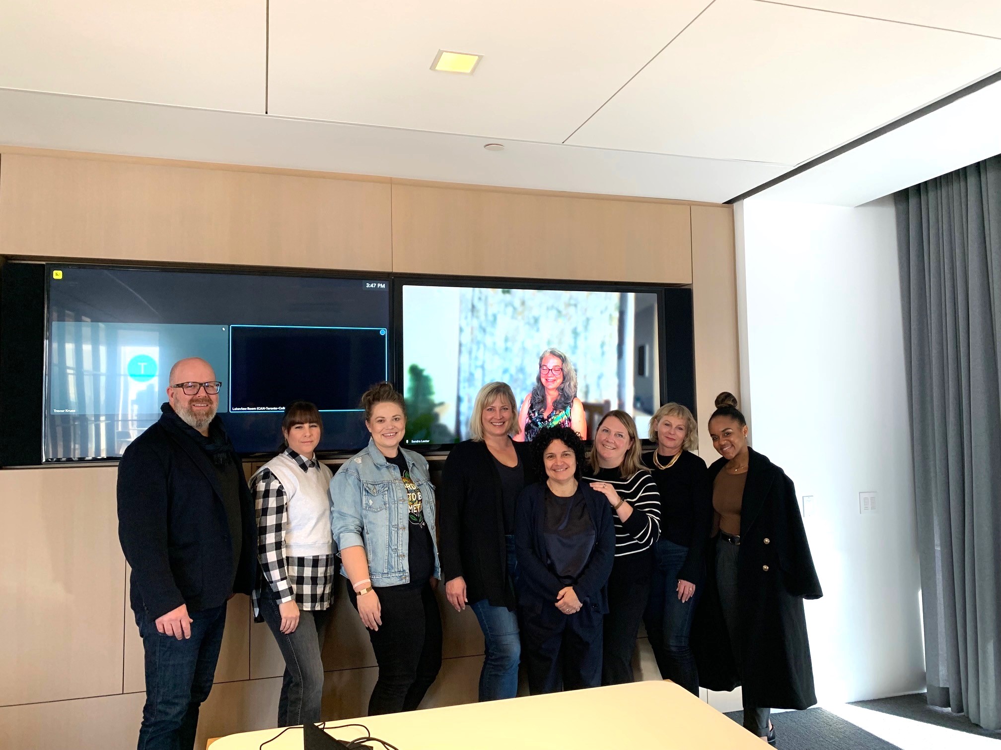 Left to right: Sean Crawford, Shannon Robinson, Keshia Caplette, Christine Weber Craik, Paola Marques, Jennifer Wiwchar-Fast, Joanna Tiffin, Kathryn Lawrence, and Sandra Lester (top, on screen).
