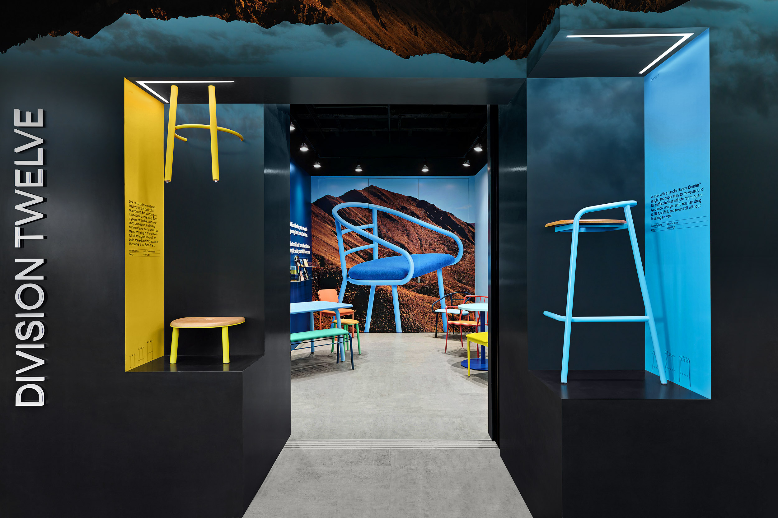 Division Twelve, a subsidiary of Keilhauer has just opened up its brand new showroom in Chicago. Located on the third floor of Chicago’s famous Merchandise Mart, the new Division Twelve showroom is designed by interior design firm Figure3 and mirrors the brand’s goals to spark joy and creativity. To capture these sentiments, the design incorporates custom graphics that present the company’s expansive 20+ color offering. The unexpected use of dimension, space, and scale softly suggests the limitless possibilities available with the furniture line.